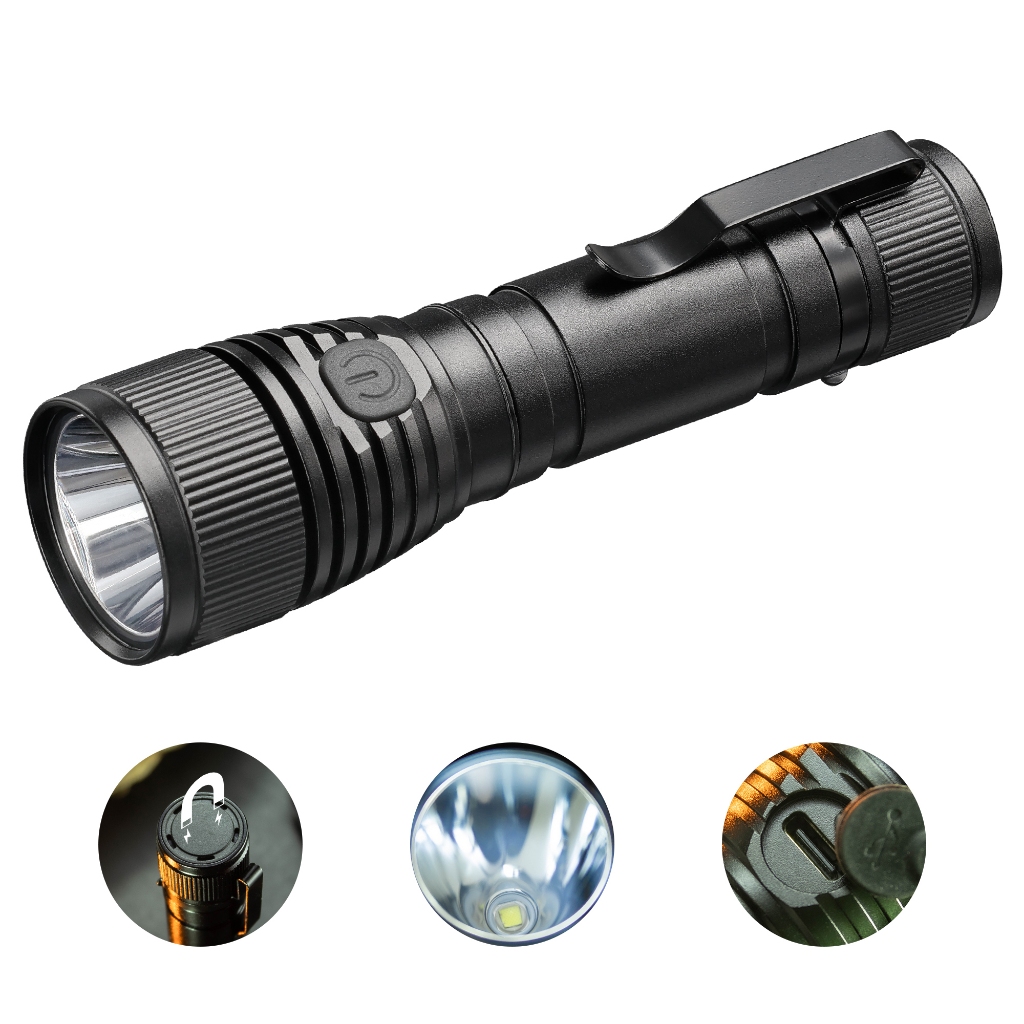 2. Rechargeable & Long-lasting: The rechargeable flashlight equipped with a built-in USB C charging port and power indicator, it informs you the power level and it can easily work for more than 56 hours in low mode.