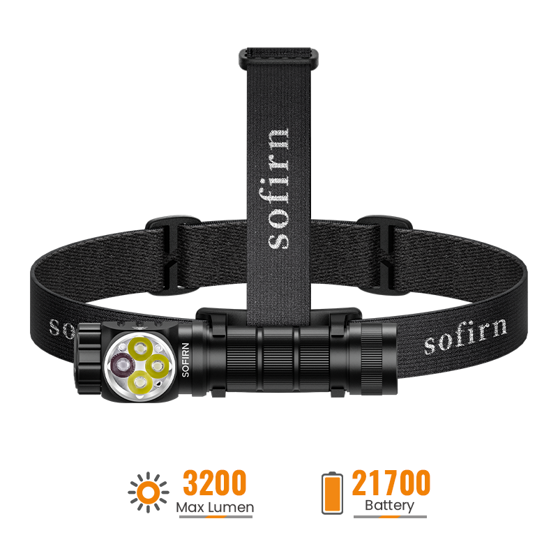 The HS43 is a high-performance headlamp with a right-angle design that can also be used as a flashlight.