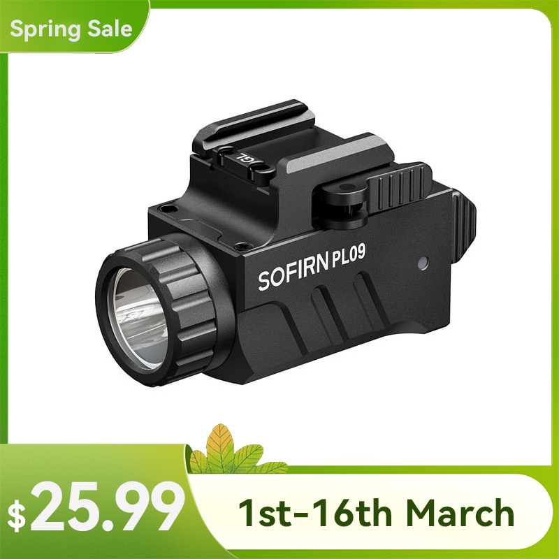 4.【Low Profile and Compact】Sofirn PL09 is only 1.59 in height and weights 3.21 oz, no extra load to your pistol. Please make sure that there is a standard picatinny rail on your pistol before purchase.