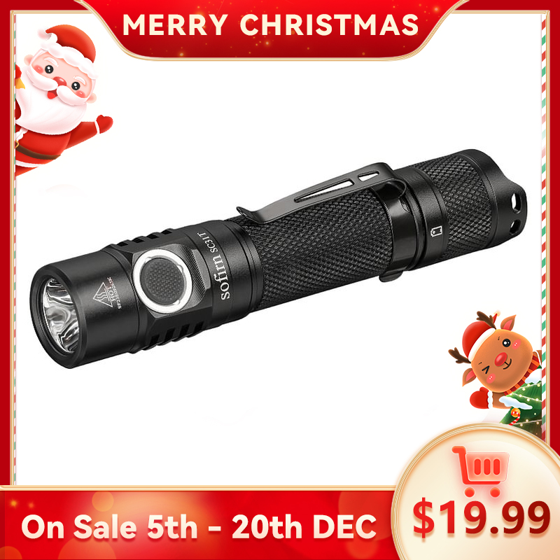 1. Super Bright: Sofirn SC31T utilizes 1 x SST40 LED(6500K or 5000K), powered by a single 18650 battery, giving out up to 2000 high lumens, throwing up to 206 meters .It’s bright enough for hiking, camping, dog walking, running, hunting, fishing etc.