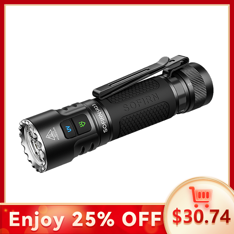 1. Dual-Light Versatility: The SR23 combines a powerful 3300-lumen white light and 365nm UV light—perfect for daily use, outdoor lighting, banknote checking, scorpion spotting, or quick cleanliness inspections.