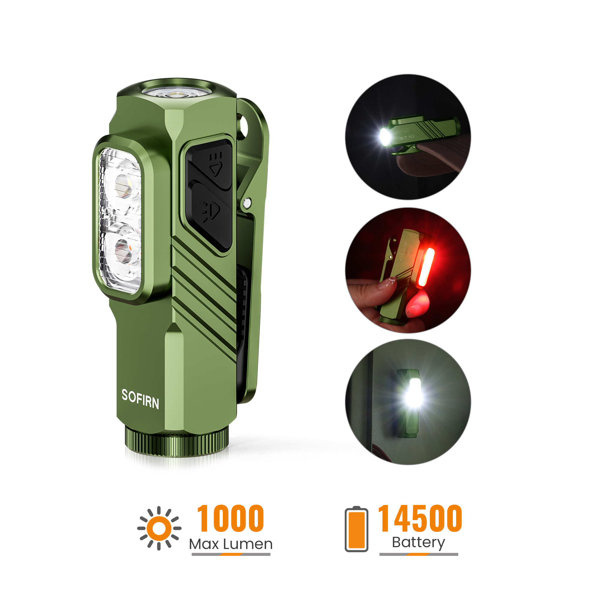 - 3-in-1 Light Setup: Super bright 1000-lumen main beam for distance, side white light for close-up tasks, plus a red light to protect your night vision—perfect for fishing, night walks, or reading.